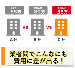 1社だけでは、業者の言い値で費用が決まってしまい、見積もりが高いのか?安いのか?さえ分からず、数十万円以上の損が起こりうるからです。