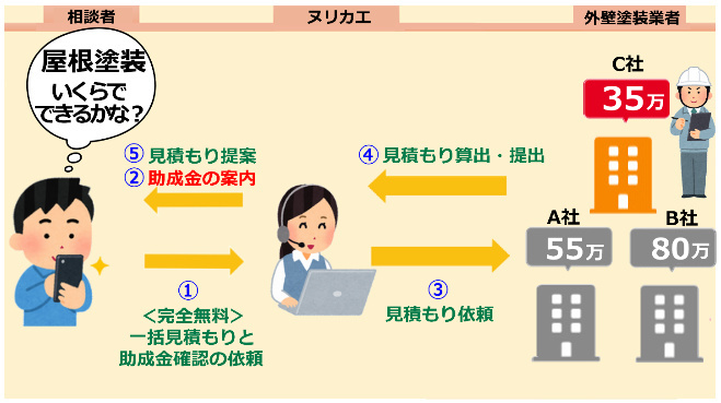 ヌリカエ』という、助成金申請のサポートと屋根塗装費用の最安値を、無料で知れるサービスです。