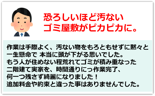ゴミ屋敷の片付けの他にも幅広く対応してくれ安心です。