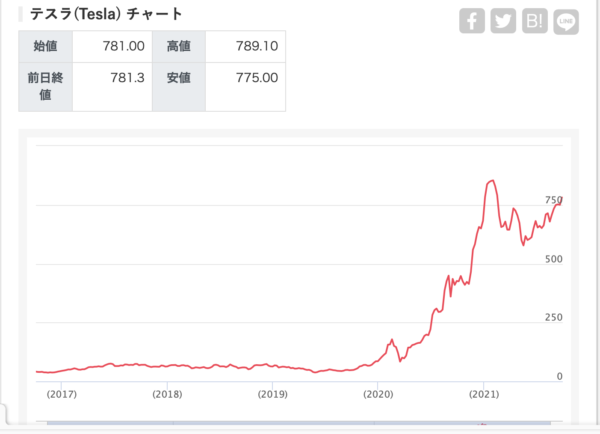 テスラの株価は急上昇中