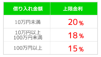 お金を借りる時の金利は、借りる金額によって次のように法律で決まっています。