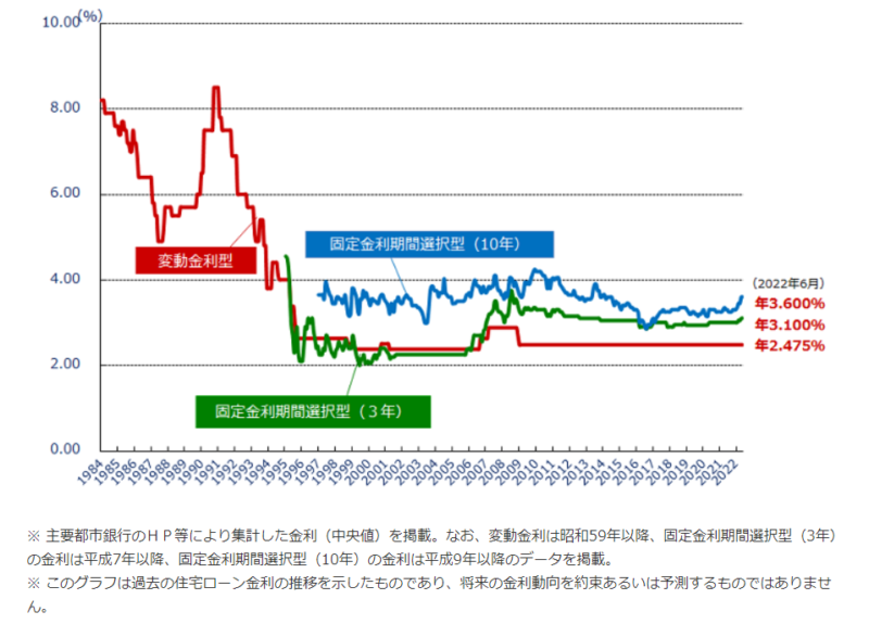 また、固定金利は2022年に入ってから少しずつ上がり始めています。