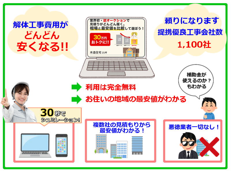 今や、解体工事を考えている多くの方が最初に利用している定番サービスです。