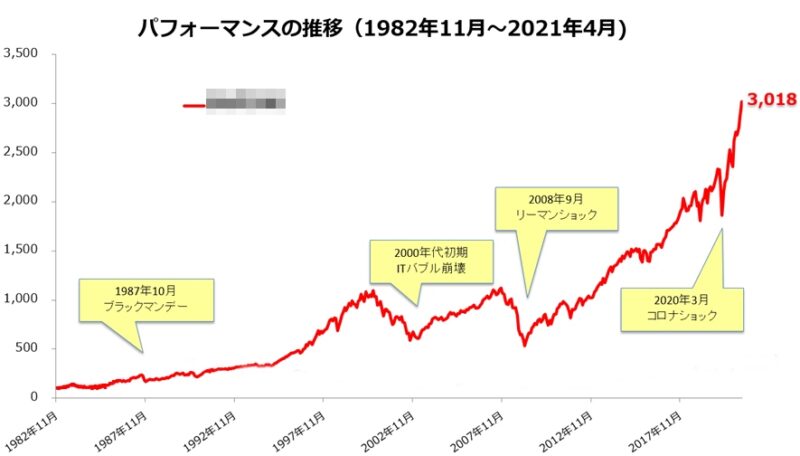 なのでバブル崩壊やコロナショックも乗り越え、今現在も右肩上がりの投資信託です。