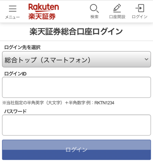 楽天証券のログイン方法(スマホ)