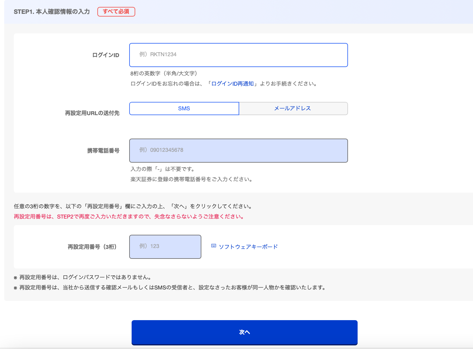 ①先に「ログインIDの再通知」でIDを確認