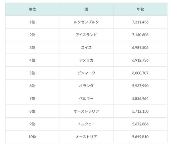 【世界の給料ランキング】