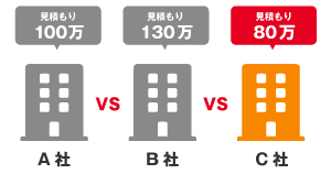 1社だけでは、業者の言い値で見積もりが決まってしまい、見積もりが高いのか?安いのか?さえ分からず、結果的に数十万円以上の損が起こりうるからです。