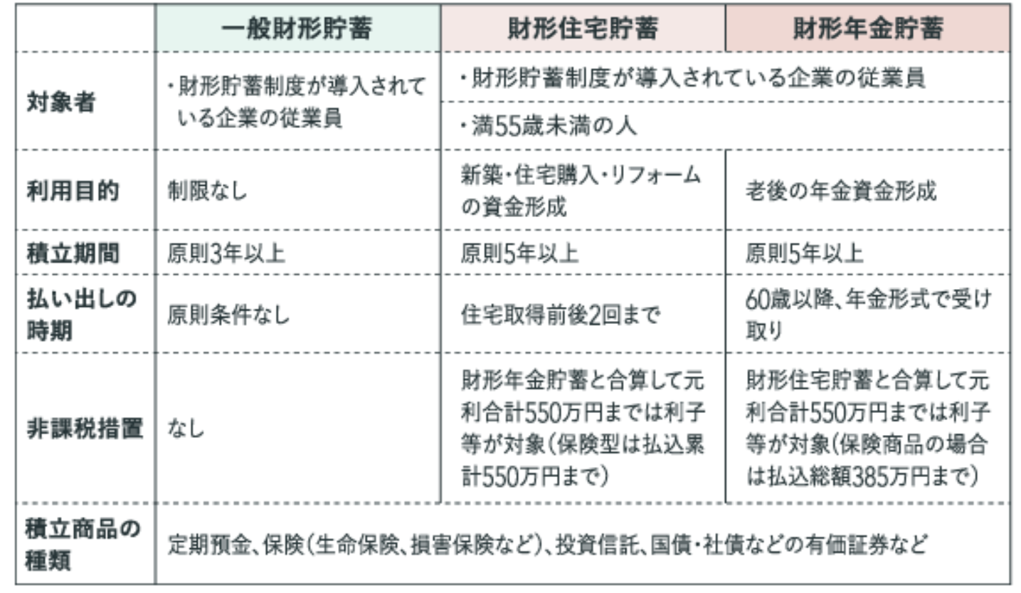 財形貯蓄の種類