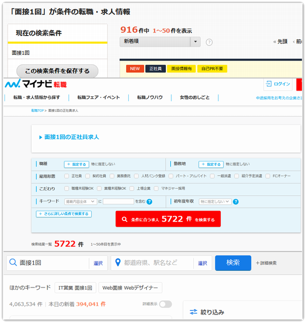 「面接1回で内定」するケースは稀なのでは?と思われるかもしれませんが、実際に検索してみるとたくさんの求人が見つかります。